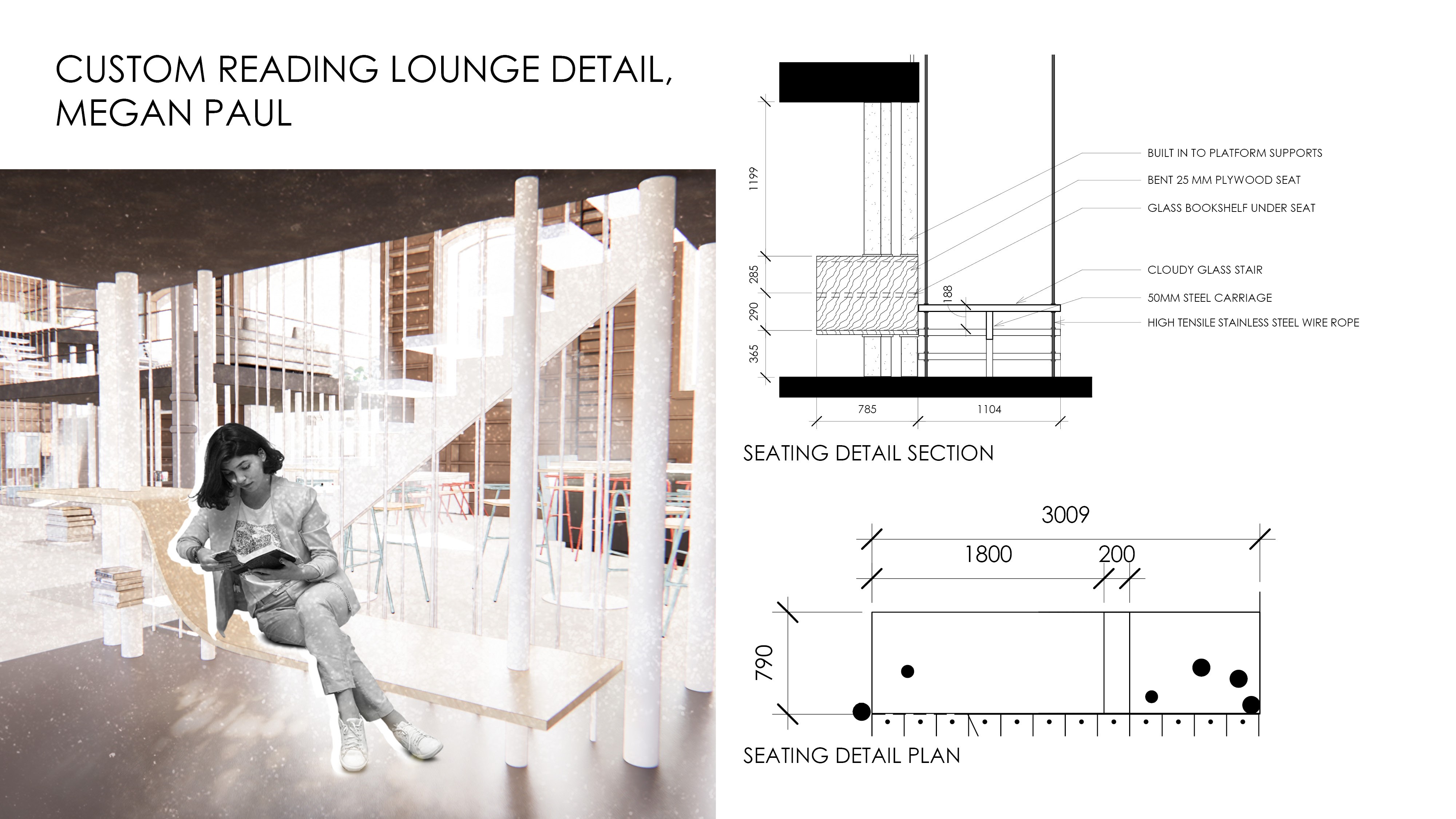 The project is located in the Flamino neighborhood of Rome within the MAXXI Café. The initial site analysis involved a critical look at the existing column grid, apetures, symmetry, and the existing structural elements within the space, as well as the surrounding green spaces. O ur client is the Italian National Institute for Environmental Protection and Research (also known as ISPRA), who’s goal is to utilize their research and funding to create a venue for community outreach through the means of a used bookstore.